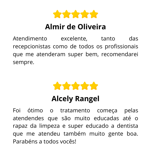 Veja o que nossos pacientes têm a dizer sobre a qualidade do atendimento e os serviços prestados em nossa clínica. A opinião deles é a nossa maior prova de compromisso com cada um dos nossos pacientes. O mais importante para nós é garantir a satisfação de quem nos confiou o seu bem mais precioso: O SORRISO!